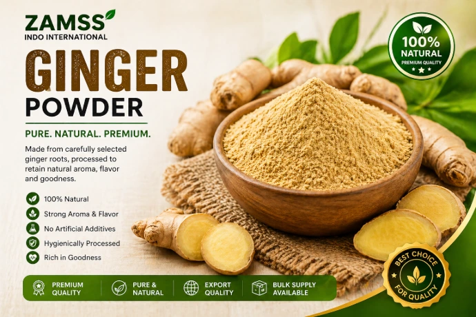 Our Ginger Powder is made from high-quality dried ginger roots, carefully processed and finely ground to preserve its natural pungency, strong aroma, and rich flavor. It is widely used in food, beverages, and health-based applications.